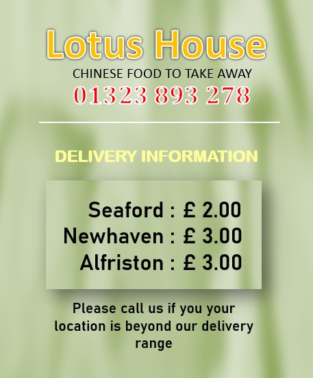 Fancy Chinese tonight? Sound like a good idea right? Why not try and order from Lotus House, Seaford, so you don’t need to spend hours in the kitchen. You have the choice of Chow Mein, King Prawn, Duck, Thai Dishes, Chef's Speciality and so much more. Ordering through our own website couldn’t be easier, just fill your basket and choose how you would like to pay. Bon appetite!
